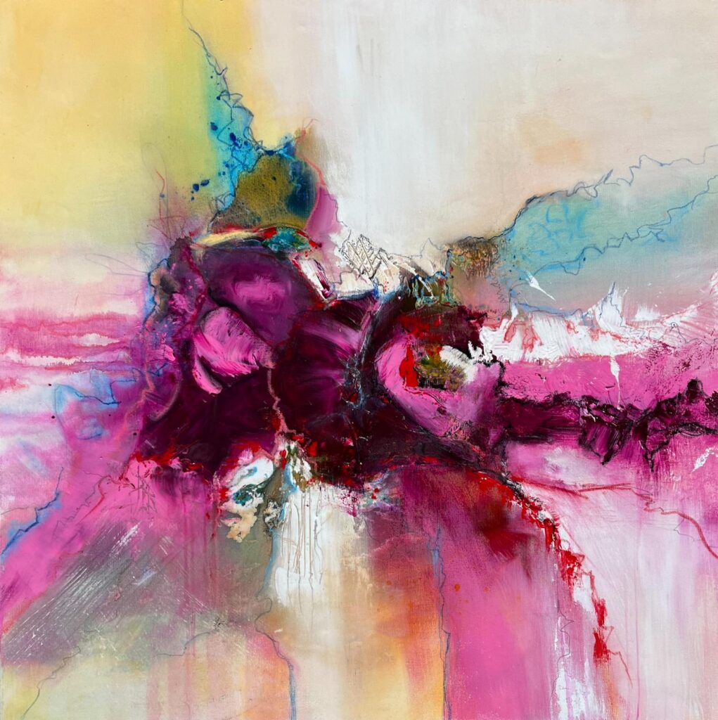 Ich bin auf der Suche nach mir, meinem Ausdruck, meiner besten Version, die sich dann auf Leinwand zeigen darf. Dabei entstehen Bilder immer jenseits des Wollens, des Egos.