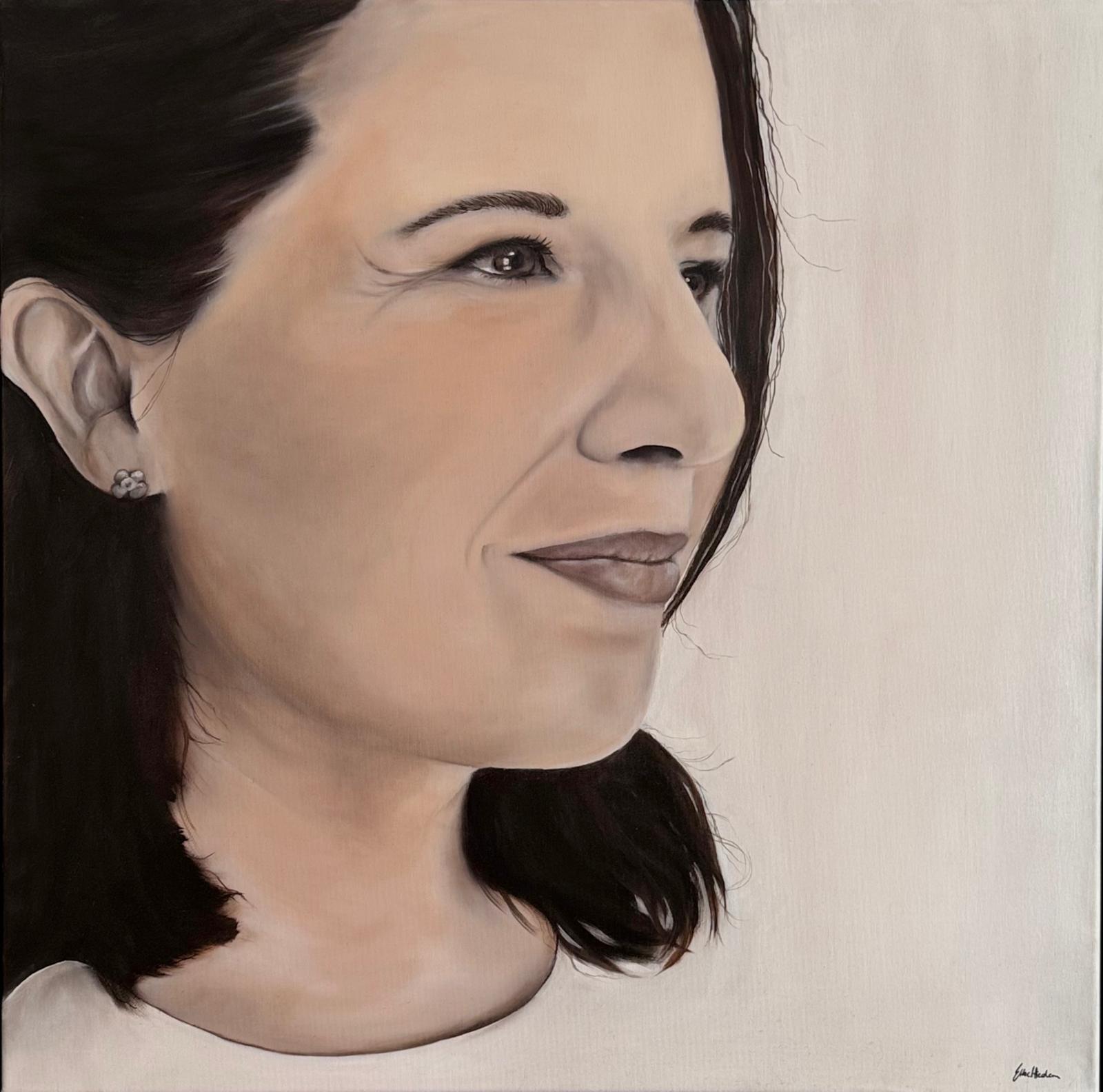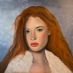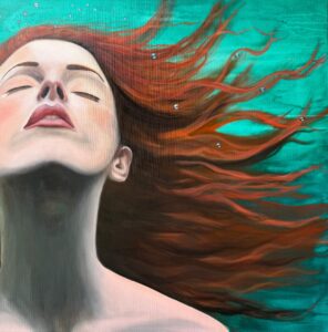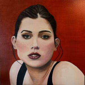 kühle Schönheit in Rot – Acryl auf HDF Platte – 60×50 – 2023